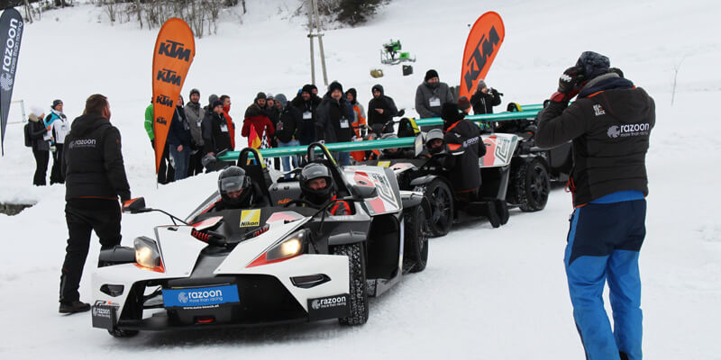 Ko smo prišli na kraj dogodka smo kaj hitro pozabili na sneg in mraz, ki sta nam bila to zimo tuja ter se zapodili do parkiranih dirkalnikov, ki so že rohneli z globokim glasom in dvigali napetost v nas. Po nekajminutnem občudovanju smo se napotili v kočo, ki je bila tik ob progi. Sledilo je oblačenje v smučarske hlače, iskanje primernih čelad in pa poizvedovanje, kje je kdo pozabil rokavice. Čez čas je sledil zbor pred dirkalniki. Le s težavo smo se ločili od tople koče, ki je bila popolno nasprotje zunanjim temperaturam, ki so bile krepko pod ničlo. Vendar pa so bila pričakovanja večja in dokaj hitro smo vsi bili zunaj. Sledila so varnostna navodila in napotki glede vožnje ter razvrstitev v skupine.